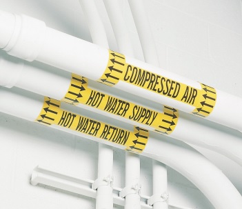 Need pipe identification labels for process and utility piping in industrial facility? We design and print pipe identification labels in compliance with ANSI/ASME A13.1 for all standard and custom pipe identification labelling requirements. We know the abuse pipe identification labels will go through every day in your facility (wash-down, dust, heat, cold) and we understand you need them to last and maintain visibility and clarity for a long time. Made from water/weatherproof material and laminated to protect from the elements, we guarantee these will last!